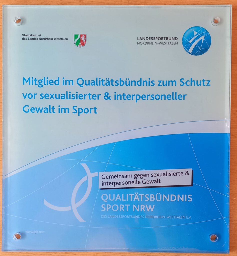 Wir haben einen wichtigen Schritt auf diesem Weg gemacht. Wir wurden heute vom Landessportbund NRW offiziell in das Qualitätsbündnis Sport NRW aufgenommen. Das Qualitätsbündnis wurde durch den LSB NRW, die Sportjugend NRW und den Deutschen Kinderschutzbund entwickelt. Sein Ziel ist es, sexualisierter und interpersoneller Gewalt im Sport wirksam vorzubeugen und diese zu bekämpfen.
